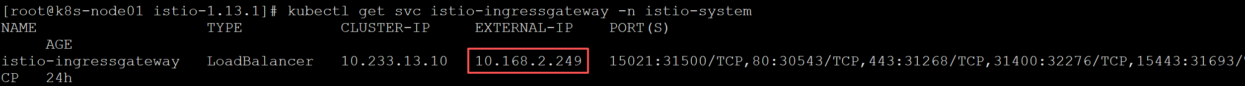 1 | kubectl svc istio-ingressgateway -n istio-system |