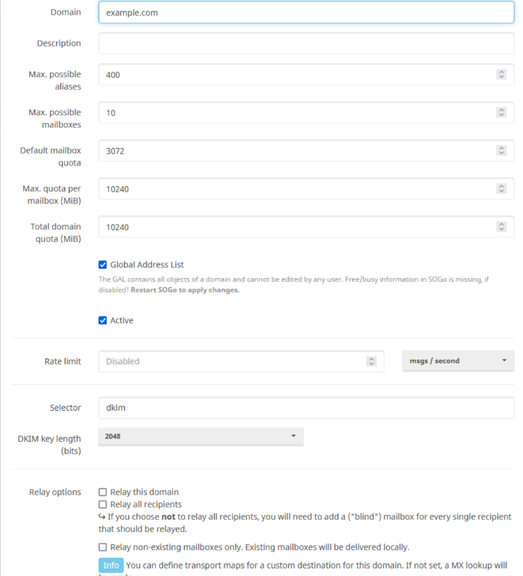 如果需要立马生效 Web 客户端,可以选择 Add domain and restart SOGo